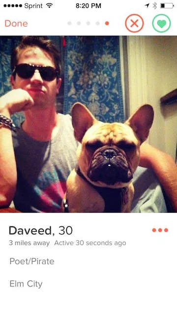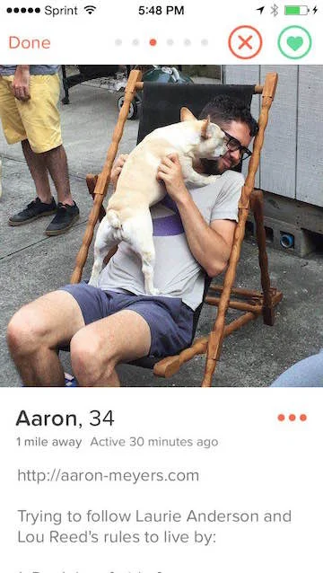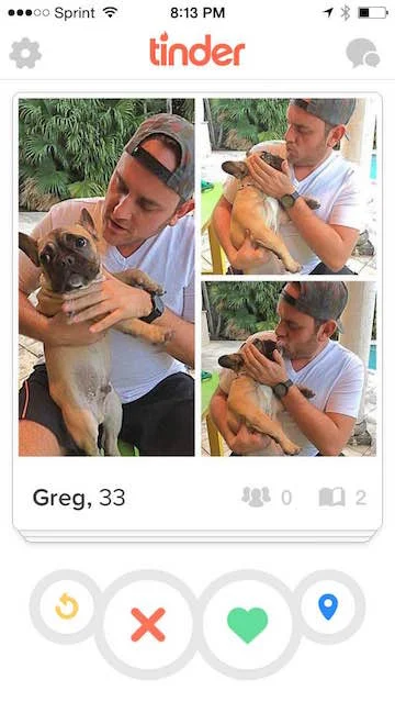Caution: do NOT be swayed by anything less than the #FBS. Do NOT let a man holding a adorable but lesser, naturally bred, less expensive, less disease prone dog fool you into swiping right! LEFT! LEFT! LEFT!